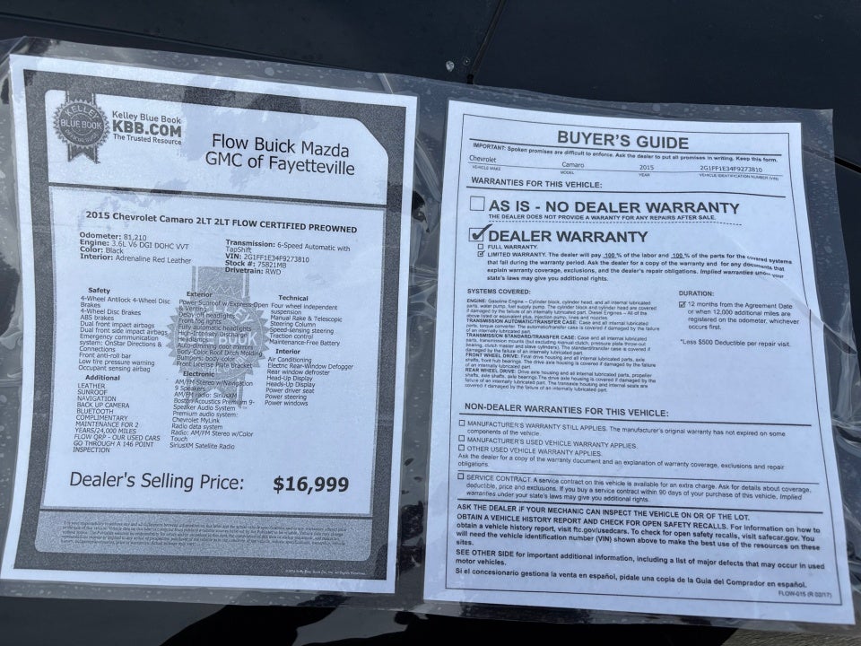 - Vehicle Name: Chevrolet Camaro
