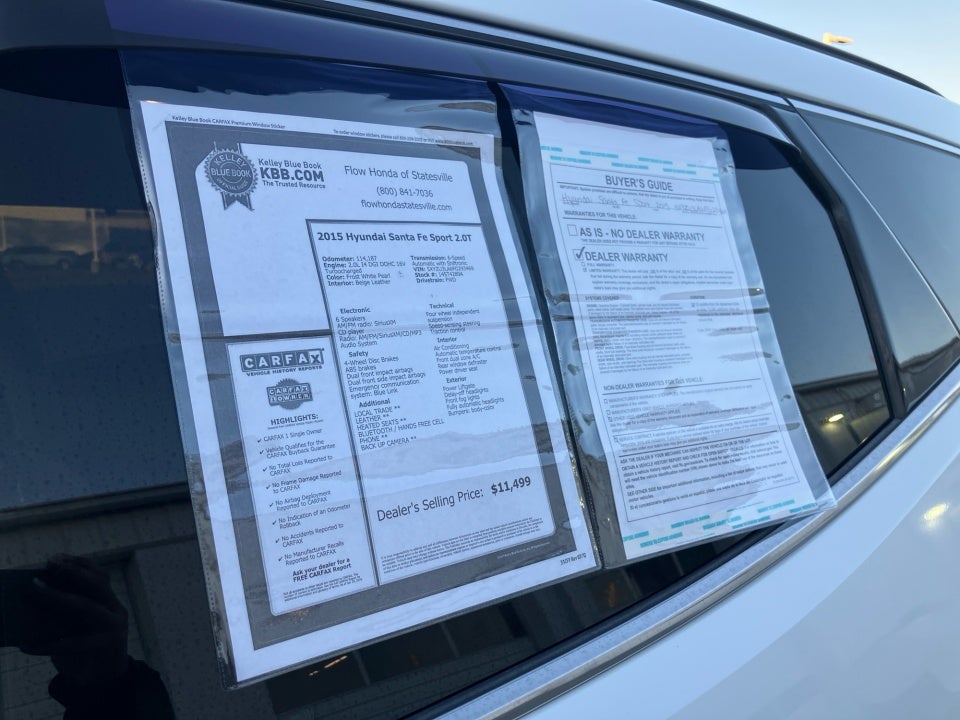 FLOW CERTIFIED! 12 MONTHS/12000 MILE WARRANTY 3 day money back guarantee and a free maintenance package on this 2015 Hyundai Santa Fe Sport Frost White Pearl 2.0T! **