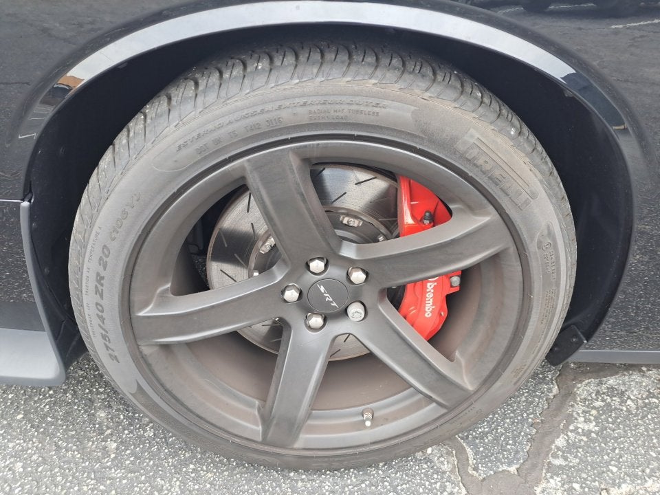 Step inside, and you'll be greeted by a luxurious cabin that's been crafted with the utmost attention to detail. The SRT Laguna Leather upholstery with Hellcat logo, Heated and Ventilated Front Seats, and Heated Steering Wheel provide an unmatched level of comfort and style. The Uconnect 4C Nav system with 8.4-inch display keeps you connected and entertained, while the Harman Kardon sound system delivers an immersive audio experience.