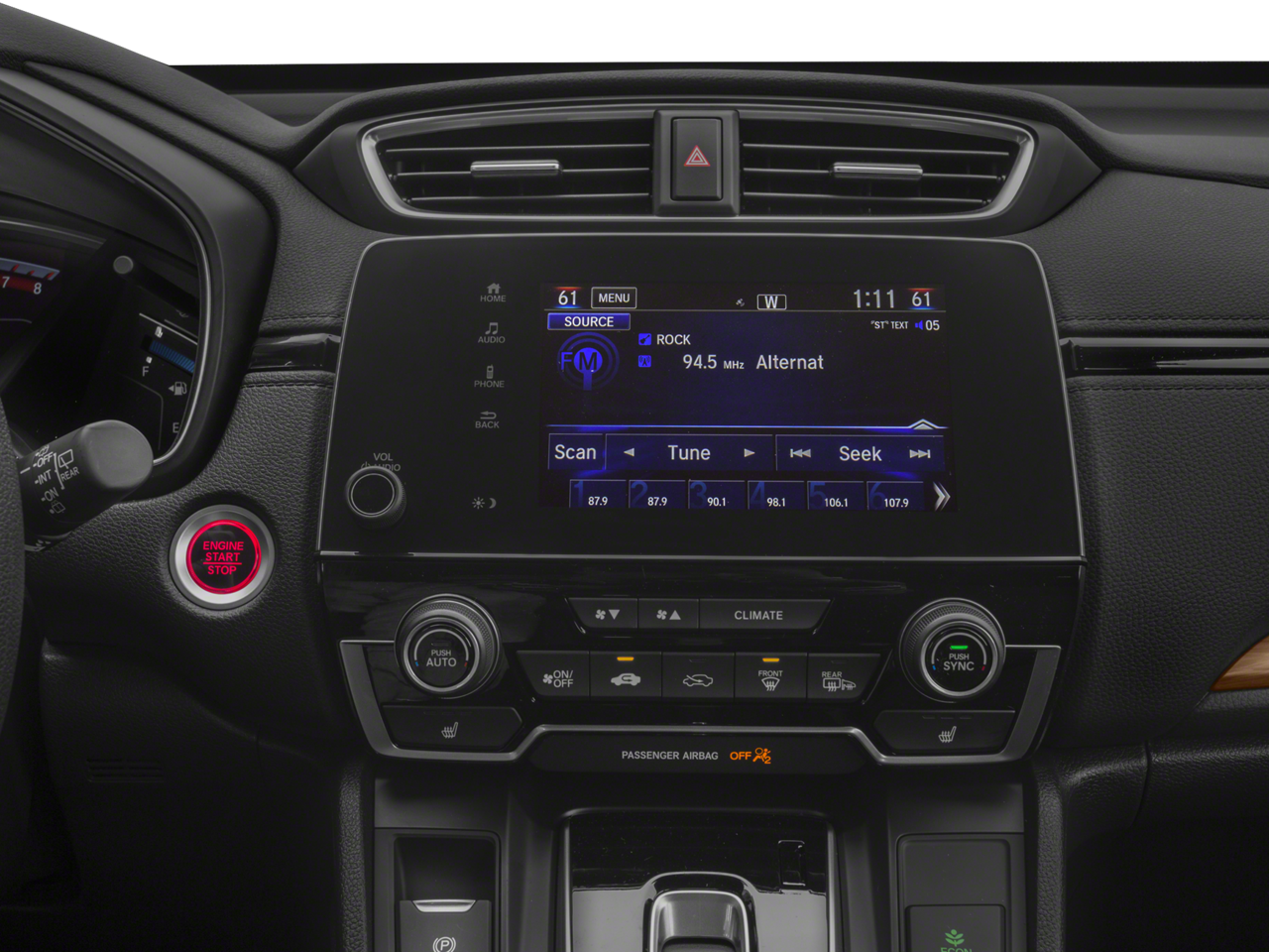 - Radio: AM/FM Audio System w/6 Speakers -inc: 180-Watts, 7" display w/high-resolution WVGA (800x480) electrostatic touch-screen, customizable feature settings, Bluetooth® streaming audio and HandsFreeLink, Pandora compatibility, Radio Data System (RDS), Speed-Sensitive Volume Control (SVC), USB audio interface w/1.0-amp port in center console, USB smartphone/audio interface w/1.5-amp port in center console, 12-volt power outlets (front and center console), HondaLink, Apple CarPlay/Android Auto, SiriusXM, SMS text message function and 2.5-Amp charging ports in 2nd-row