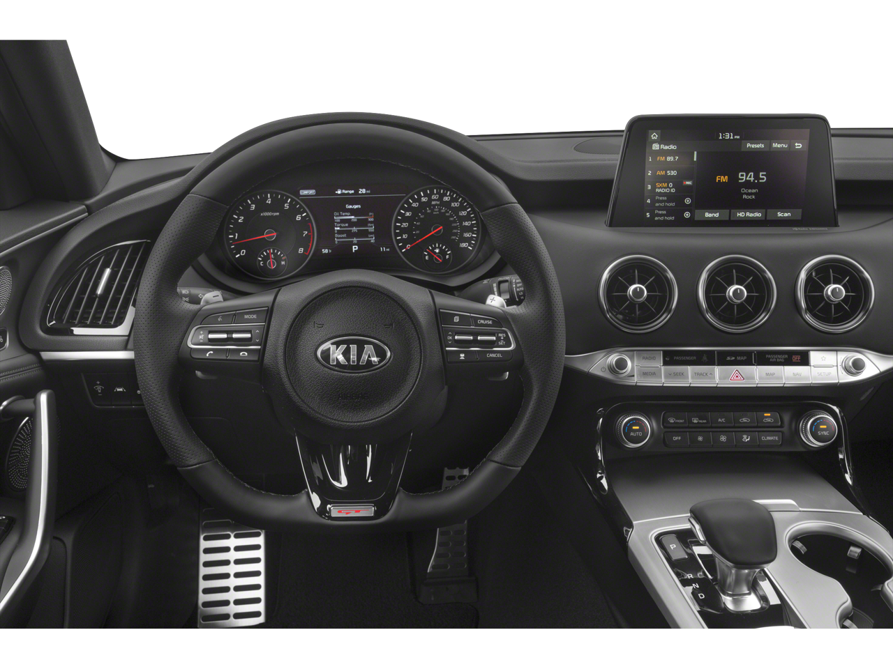 - Radio: AM/FM/MP3/HD/SiriusXM Audio System -inc: 7" color touch-screen display, 9 speakers, UVO eServices infotainment system, support for Android Auto and Apple CarPlay, USB input, Bluetooth® wireless connectivity, steering-wheel-mounted controls and voice recognition