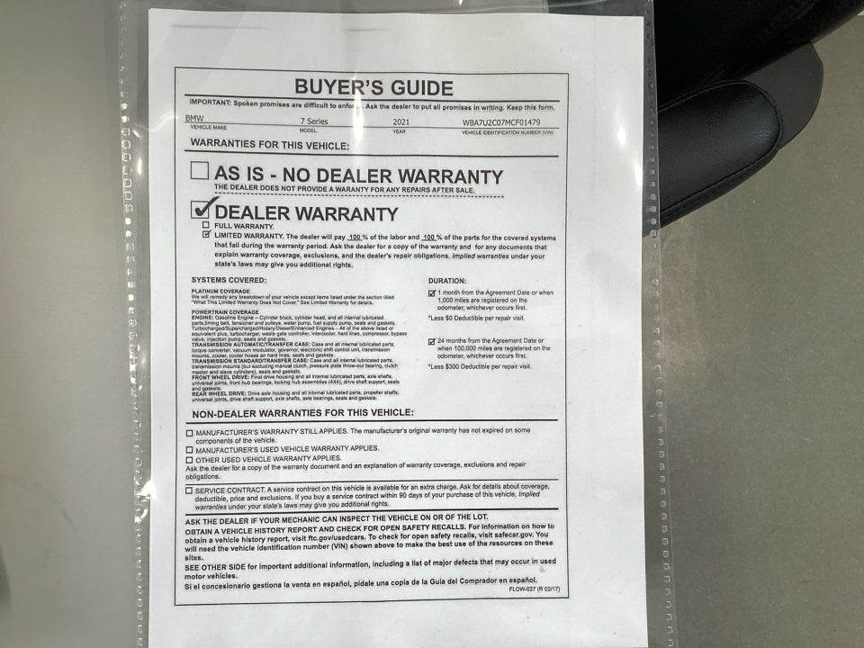 - Vehicle Name: BMW 7 Series