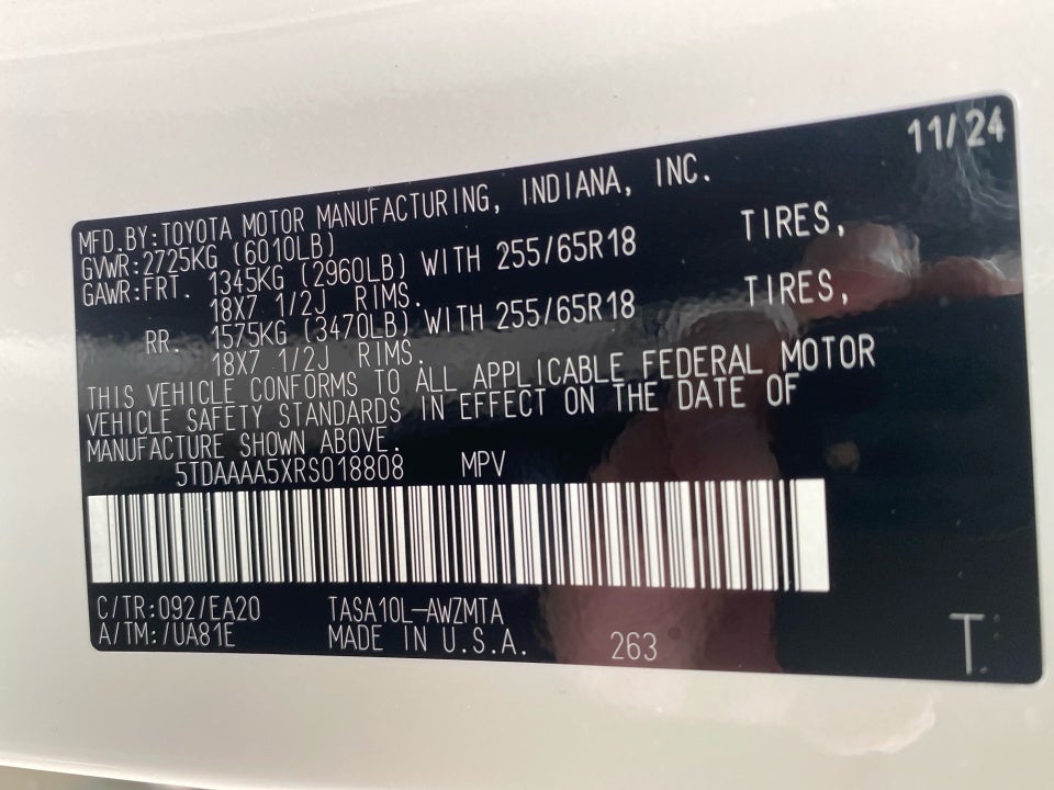 - Vehicle Name: Toyota Grand Highlander